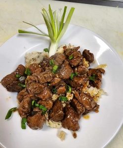 - Teriyaki beef tips over rice